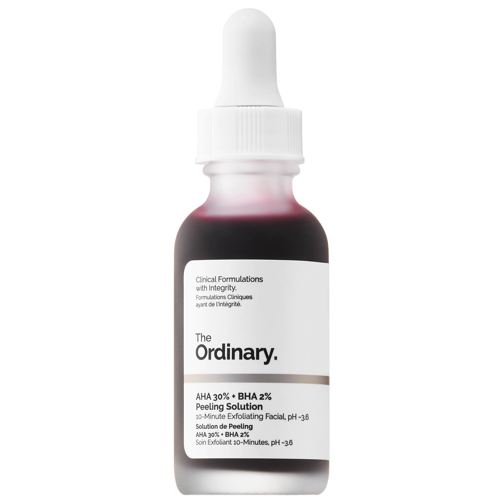 AHA 30% + BHA 2% Peeling Solution exfoliates multiple layers of the skin for a brighter, more even appearance. With the help of alpha-hydroxy acids (AHA), beta-hydroxy acids (BHA), and a studied Tasmanian pepperberry derivative, which reduces irritation that can be associated with acid use, this at-home peel helps even skin texture, clear pore congestion, and improve uneven pigmentation. The formula is further supported with a crosspolymer form of hyaluronic acid for comfort, pro-vitamin B5 for hydration, and black carrot for added protection.